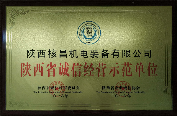 陜西省誠信經營示范單位