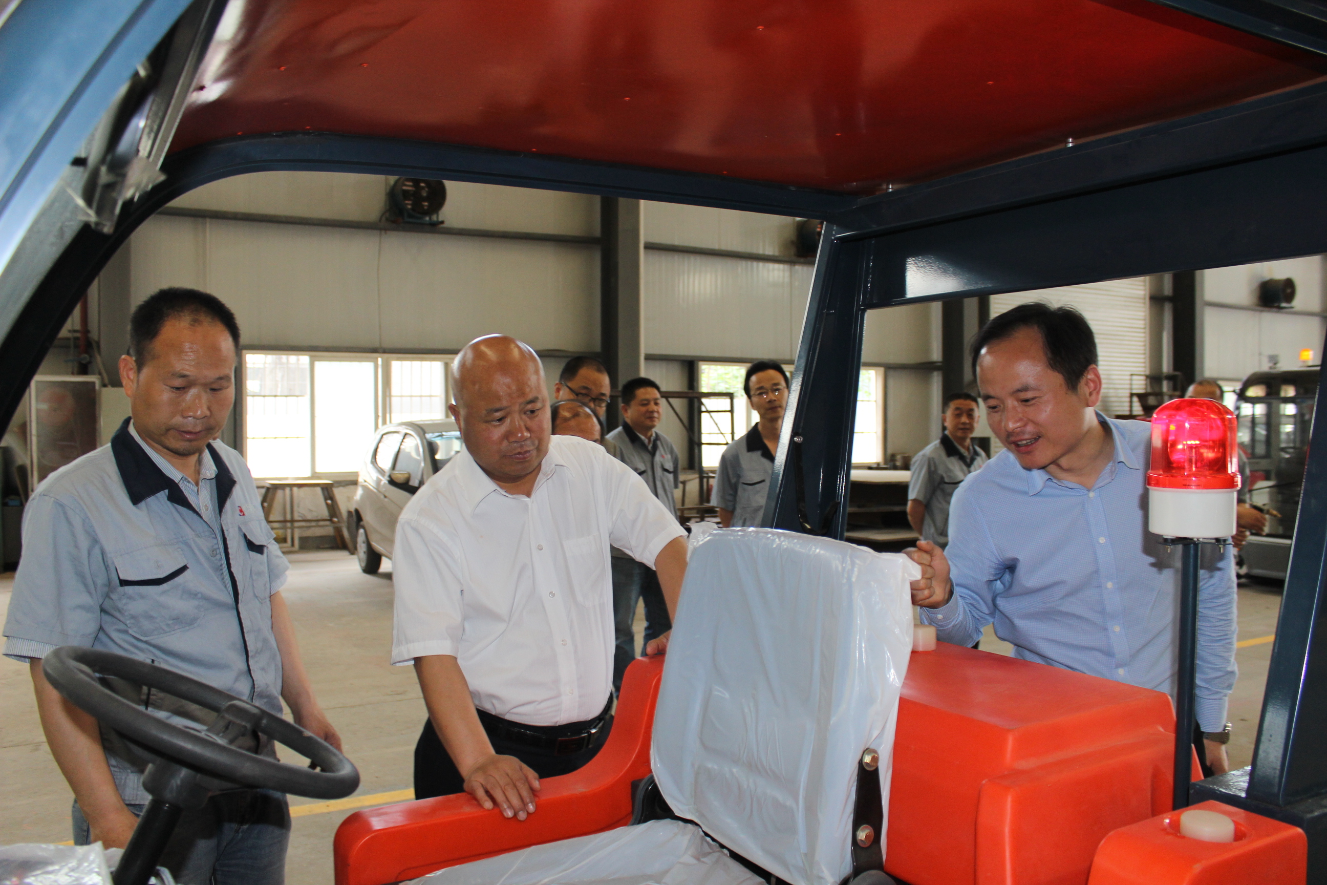 高利鵬副總首先在核昌公司總經(jīng)理王超宏等人的陪同下,視察了清掃車生產(chǎn)現(xiàn)場,尤其對近期研發(fā)的新型清掃車相關(guān)性能及生產(chǎn)情況進(jìn)行了詳細(xì)的詢問。