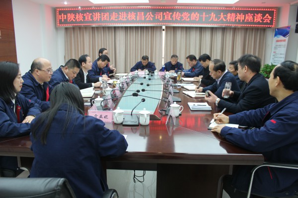 12月7日上午,集團公司第四宣講團成員到核昌公司宣講黨的“十九大”精神,公司黨委書記、董事長王超宏主持宣講報告會,集團第一巡察組組長、宣講人王建峰做宣講報告,公司領導班子成員、中層干部、各黨支部書記、黨員代表、職工代表、生產一線骨干及員工代表近六十人聆聽宣講報告。