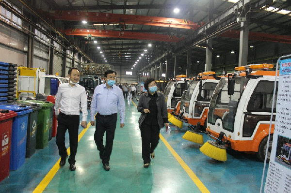 汪文展一行首先參觀了各產業板塊的生產車間,聽取了公司近幾年來在科技創新、制造研發等方面的成果,在觀看了新能源清掃機的實地演示后,雙方在二樓會議室進行交流座談。