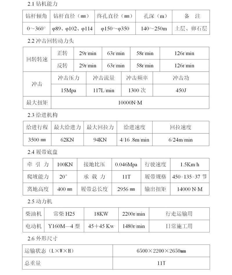 全液壓控制,機身結構堅固,設計理念先進,儀表監控,操作靈活方便,充分保證設備的實用性能。設備采用電動機作為主動力源,并且備有一個18Kw的小柴油機作為無電源時行走及搬運上下車時使用。電機總功率為90KW,其中用于用于動力頭回轉的有65Kw,所以鉆機回轉扭矩比同類型的要大將近一倍,沖擊力和提升力都非常強大,工作效率高,可一機多用,以邊坡錨固工程施工為主,也可以廣泛用于建筑深基坑、地鐵、隧道、鐵路、公路、地質災害治理的錨固施工和小型樁的施工。